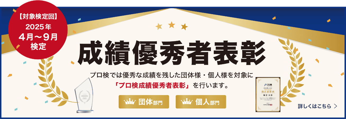 プロ検では優秀な成績を残した団体様・個人様を対象に